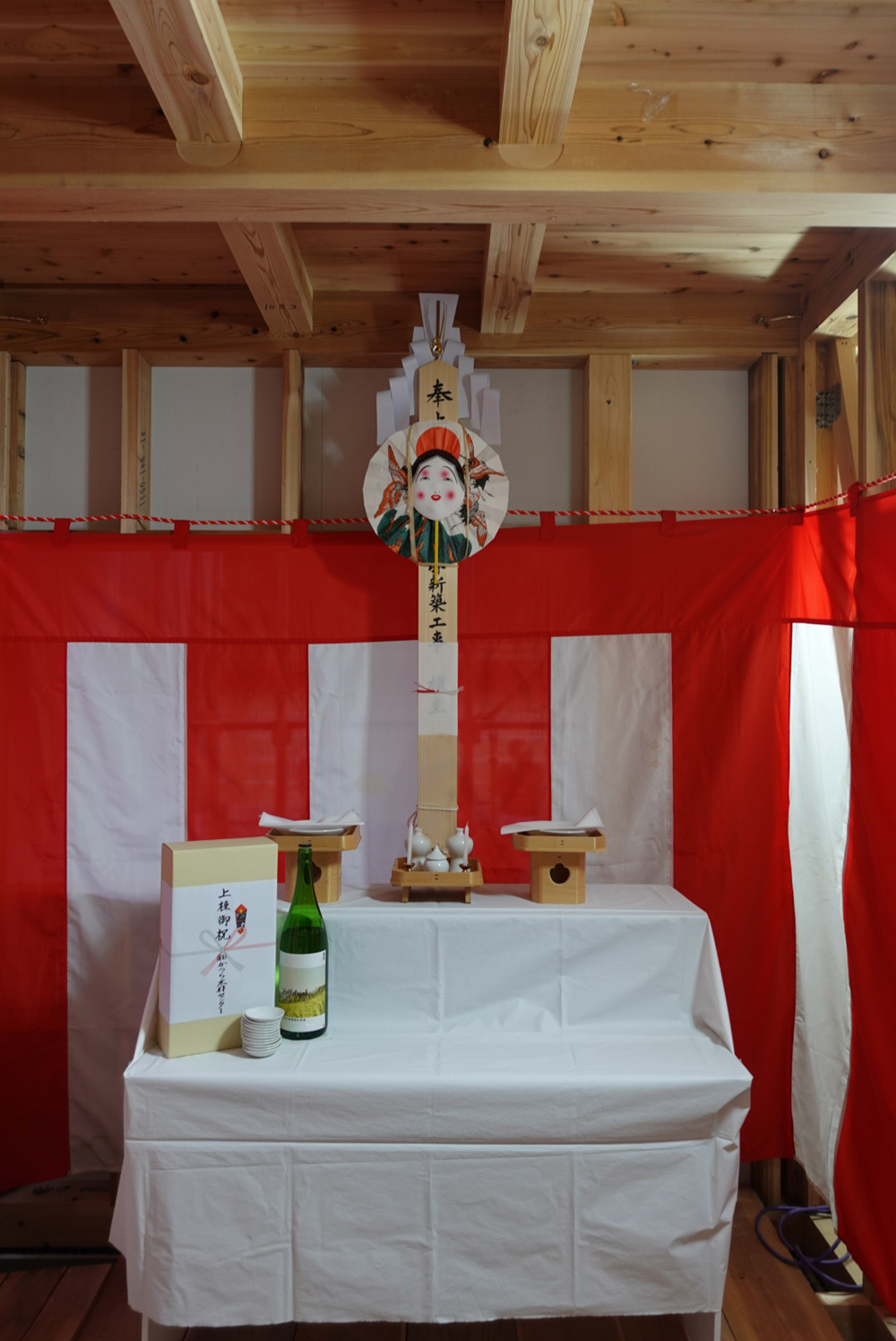 大工さんや監督は、限られた敷地環境の中作業を行い、無事に上棟式を迎えることができました。