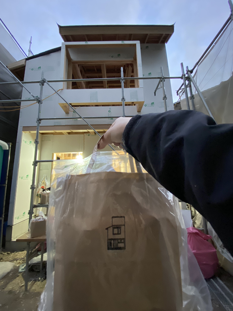 お施主様からいただいた紙袋のスタンプがお家正面の様子になっており、心ほっこりで帰社いたしました😌💭