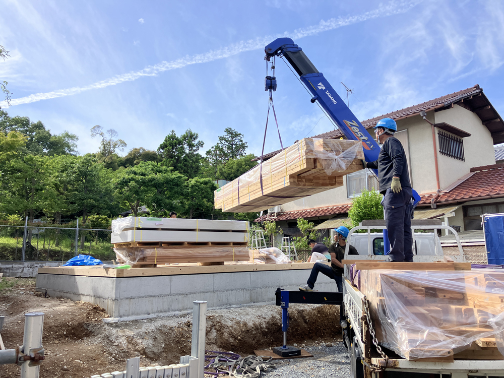 お施主様が現場に来る際には、大工さんや職人さんの手作業の様子をご覧いただけると思います。このように、お施主様にとって作り手の顔や材料を見ながら家づくりが進んでいくことは、大きな安心感がありますね。