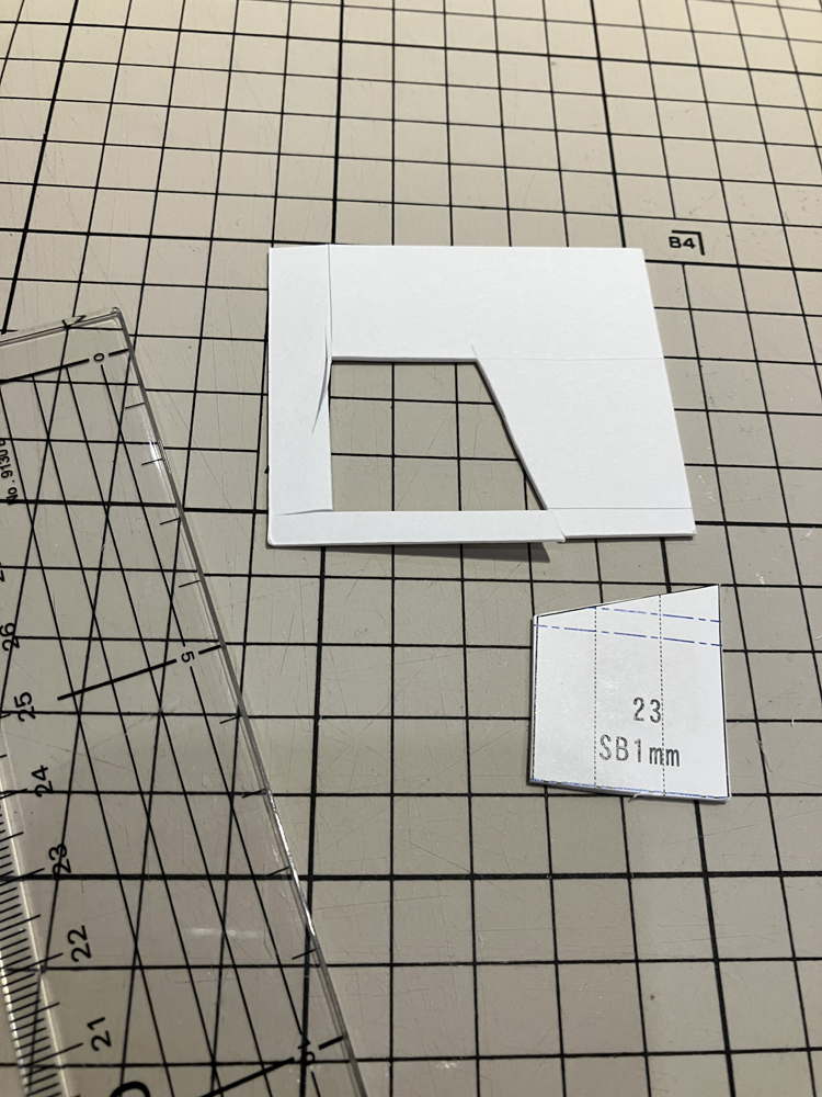まずは平面図と立面図を印刷し、スチレンボードに貼り合わせて、カットしていきます。