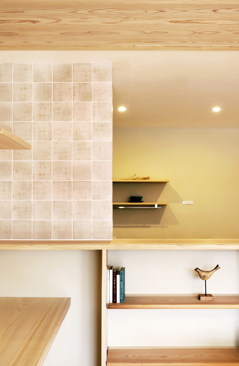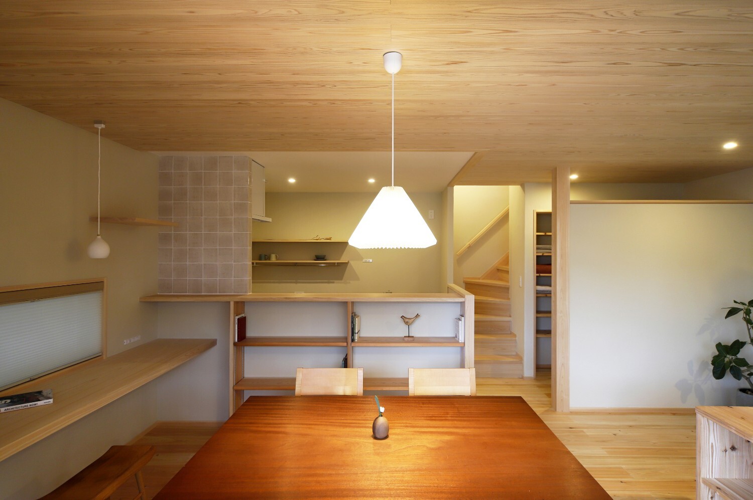 また天井を板張りとし、各所にカウンターや収納棚を設けるなど、木質感あふれる住まいになりました。