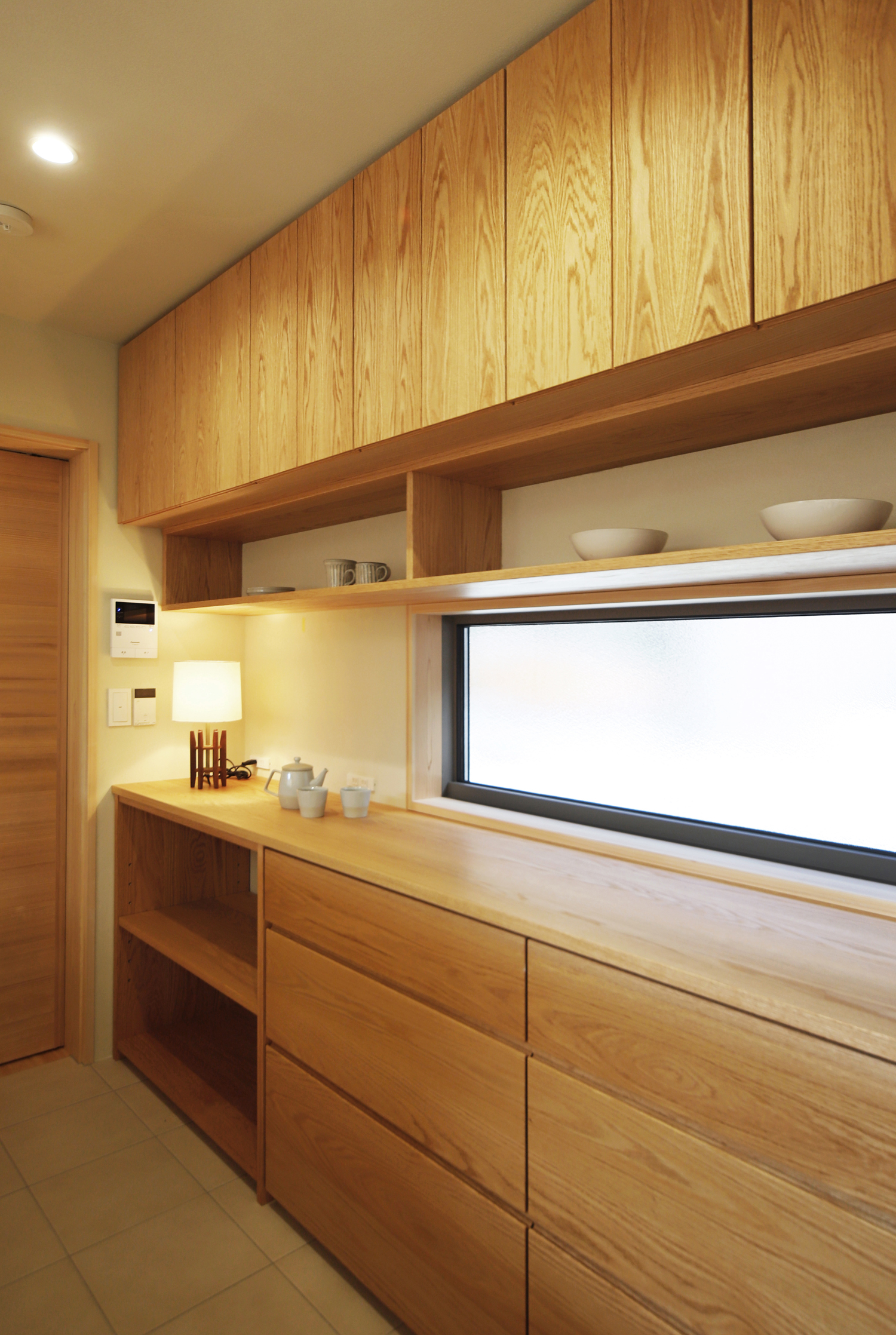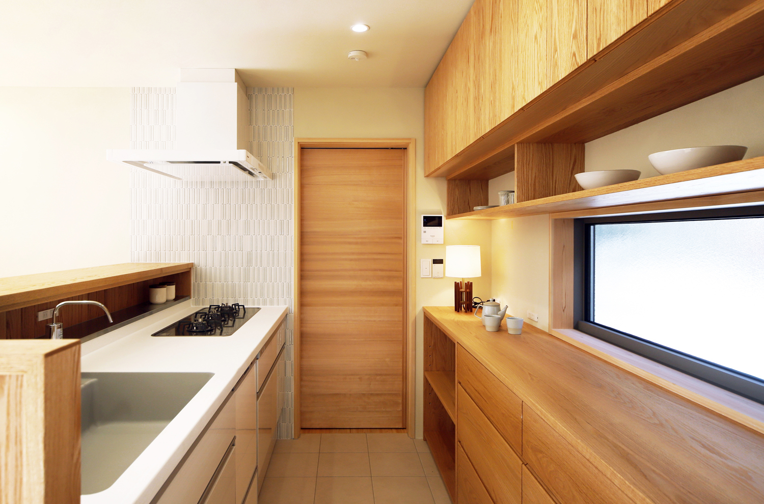他にも、キッチンキャビネットや洗面を造作して、木の素材感を活かした上質な空間としています。