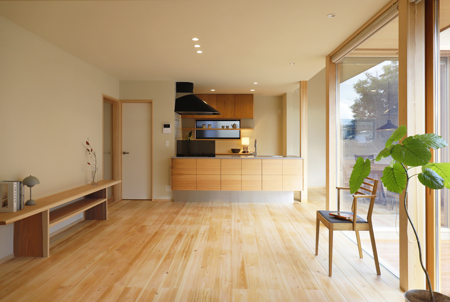 長年の生活の中で熟知した陽の射し方や風の抜け方をお聞きし、間取りに反映させています。木製サッシを使い、庭を囲みこむように配置したLDKは、自然や緑の心地よさが感じられる場所となりました。