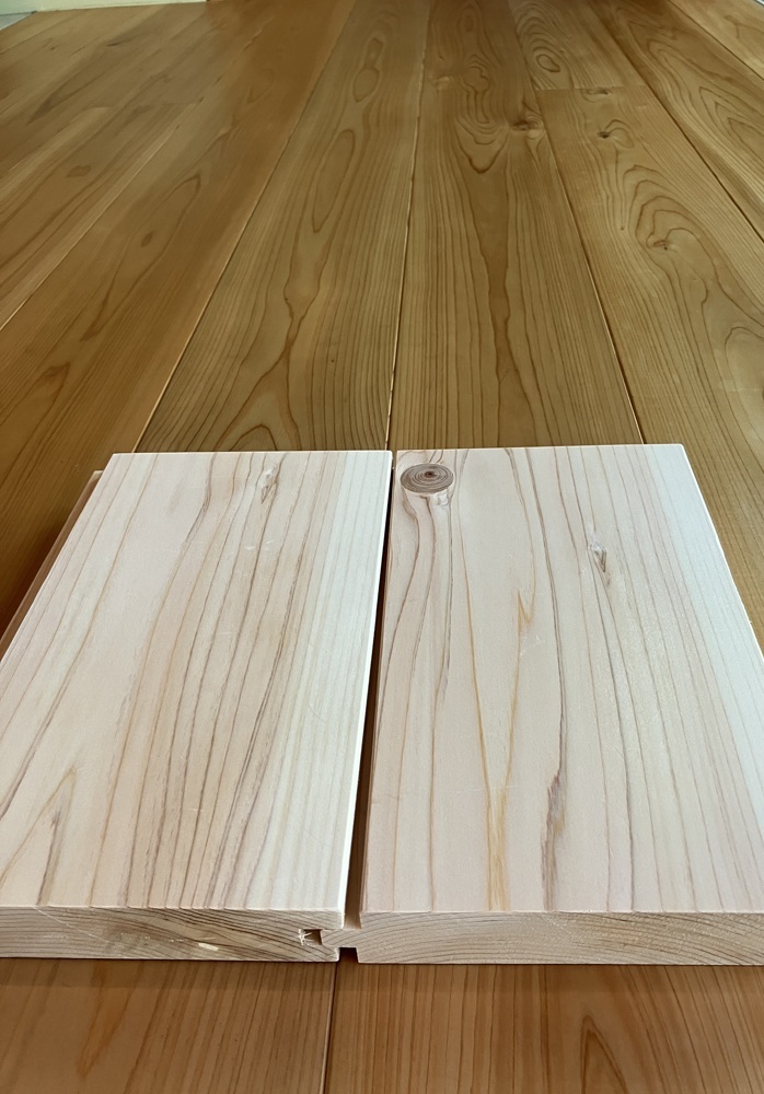 長岡京の事務所は竣工してまもなく3年が経ちますが、床張りの桧が日に焼けて色が濃くなっているのがよくわかります。この事務所の無垢材は私よりも2年半先輩ということになりますね。