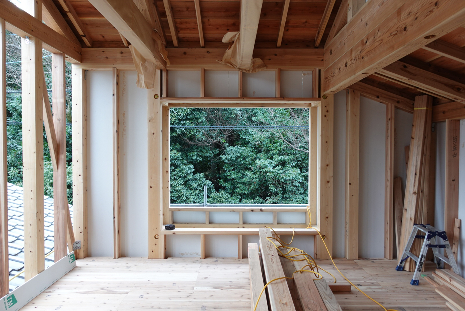 お施主様には、梯子から2階に上がっていただき、出窓から見える緑の様子やベランダから眺める比叡山の姿を感じていただきました。お引渡しは7月を予定しており、新しい家族を迎え入れての生活がスタートするそうです。木の香りに包まれた暮らしを気に入っていただけると嬉しいです。