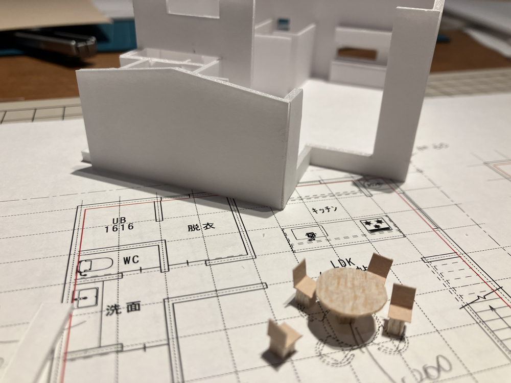 この模型ですが、お客様との打合せを重ねる中で具体的なイメージが膨らむよう作成しております。