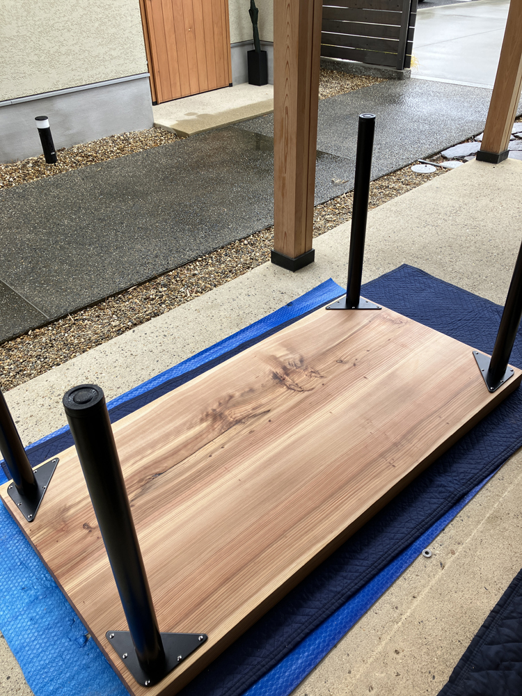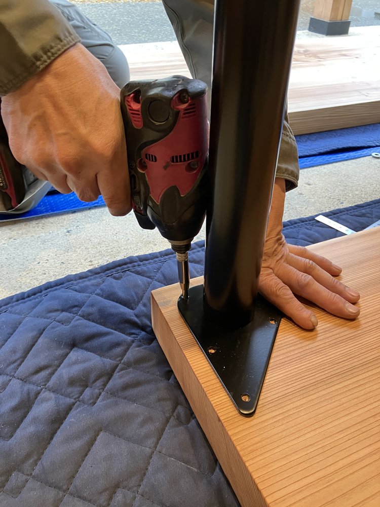 それでは、前回塗ったオイルがしっかり乾いているか確認し、カウンターに足を取り付けていきましょう!