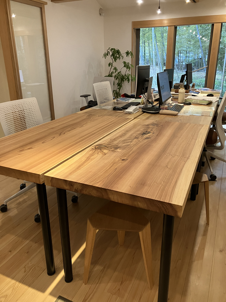 事務所内にカウンターを運び込み、脚の高さを揃えたら完成です。