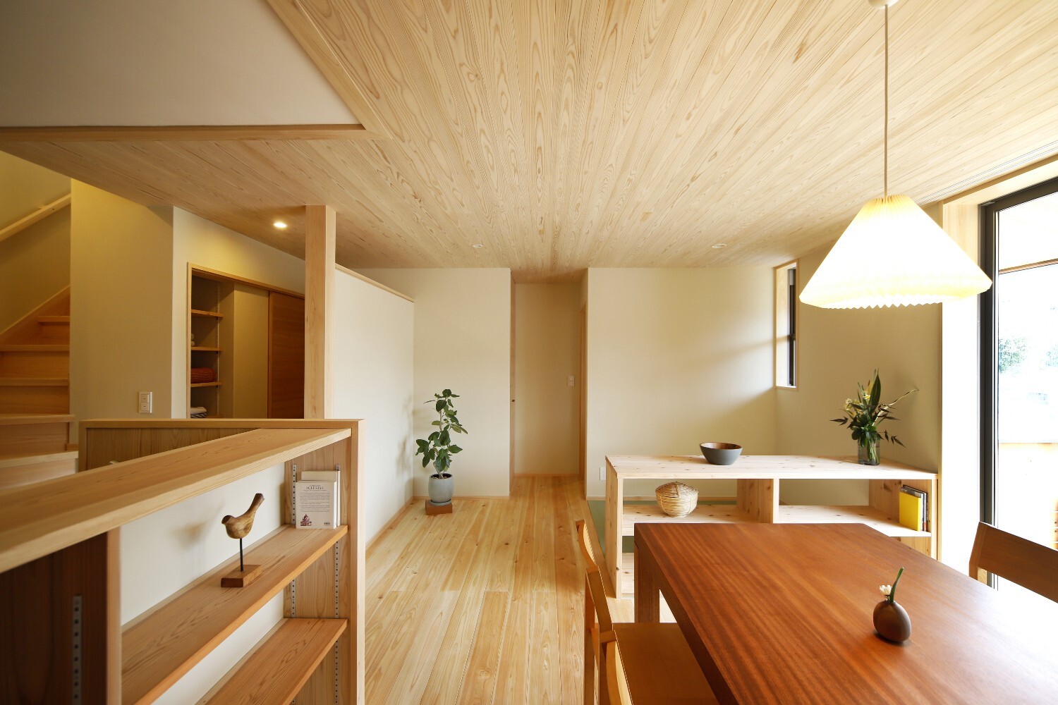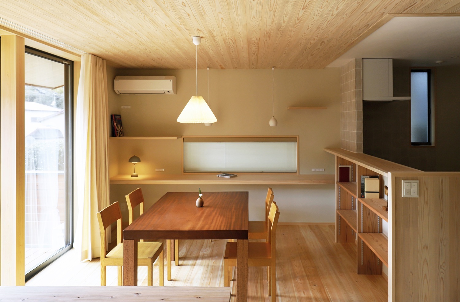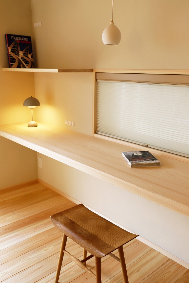 また天井を板張りとし、各所にカウンターや収納棚を設けるなど、木質感あふれる住まいになりました。