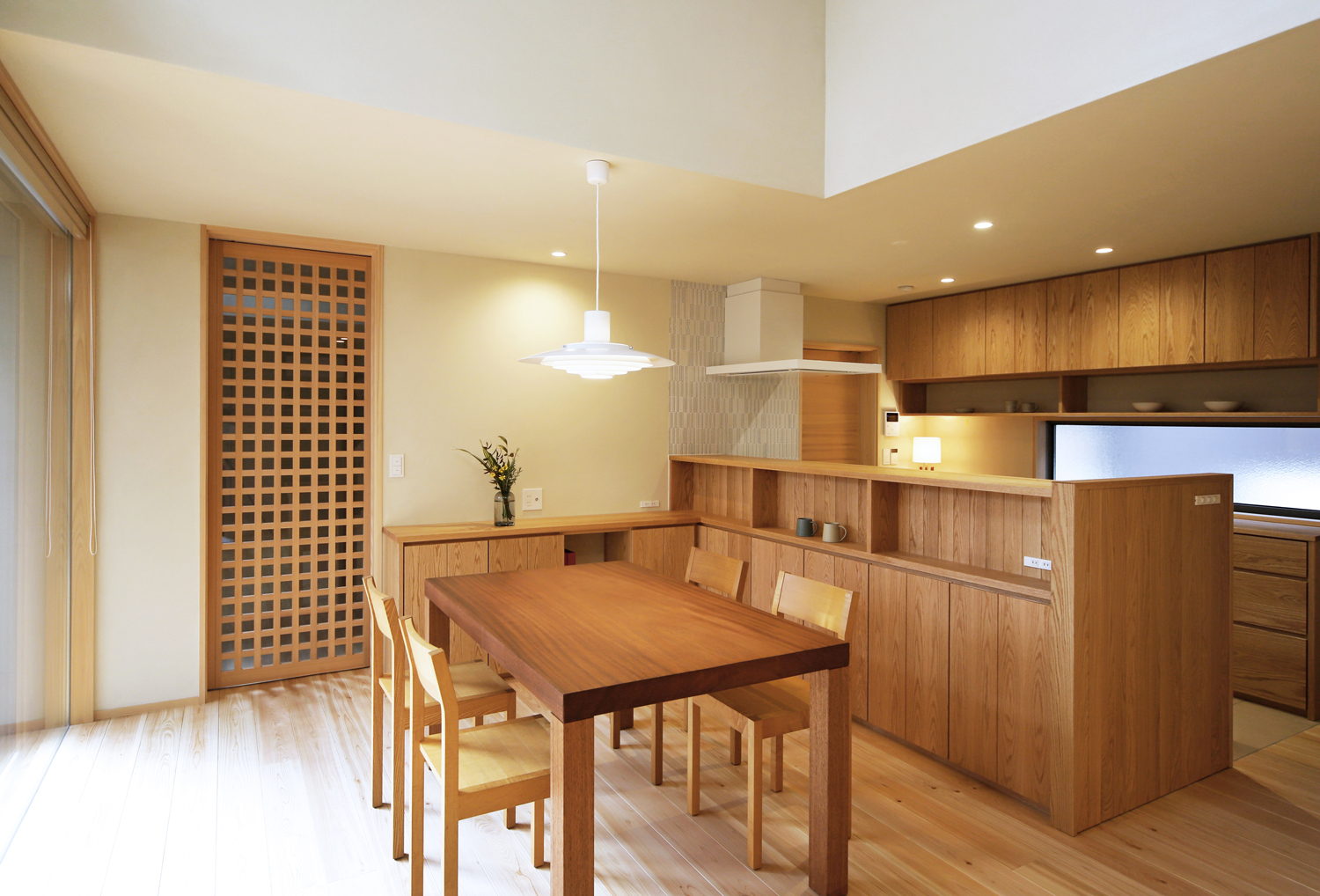 他にもキッチンキャビネットや洗面を造作して、木の素材感を活かした空間としています。